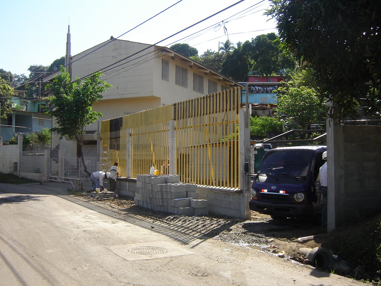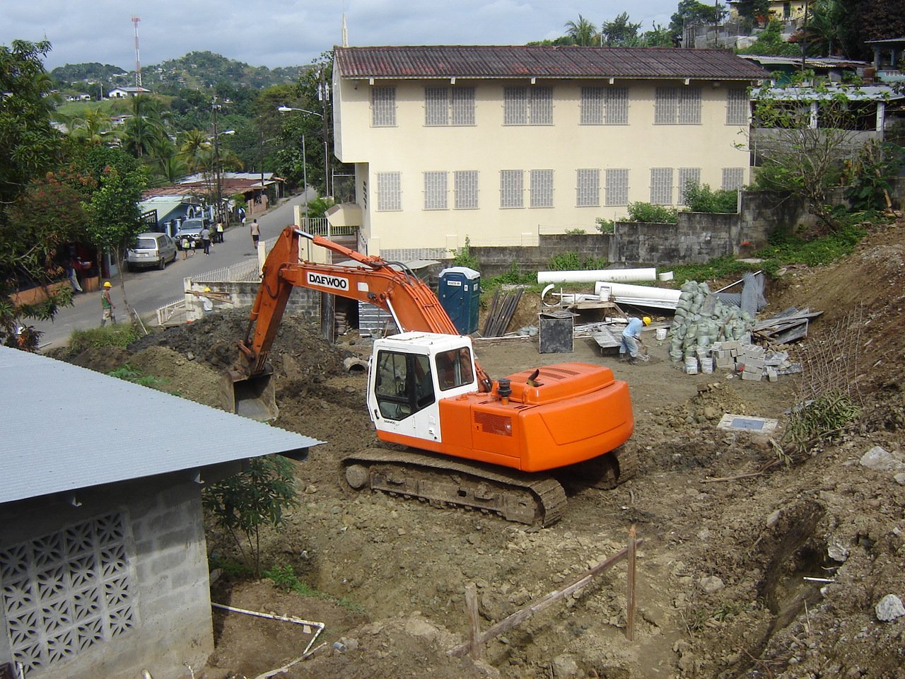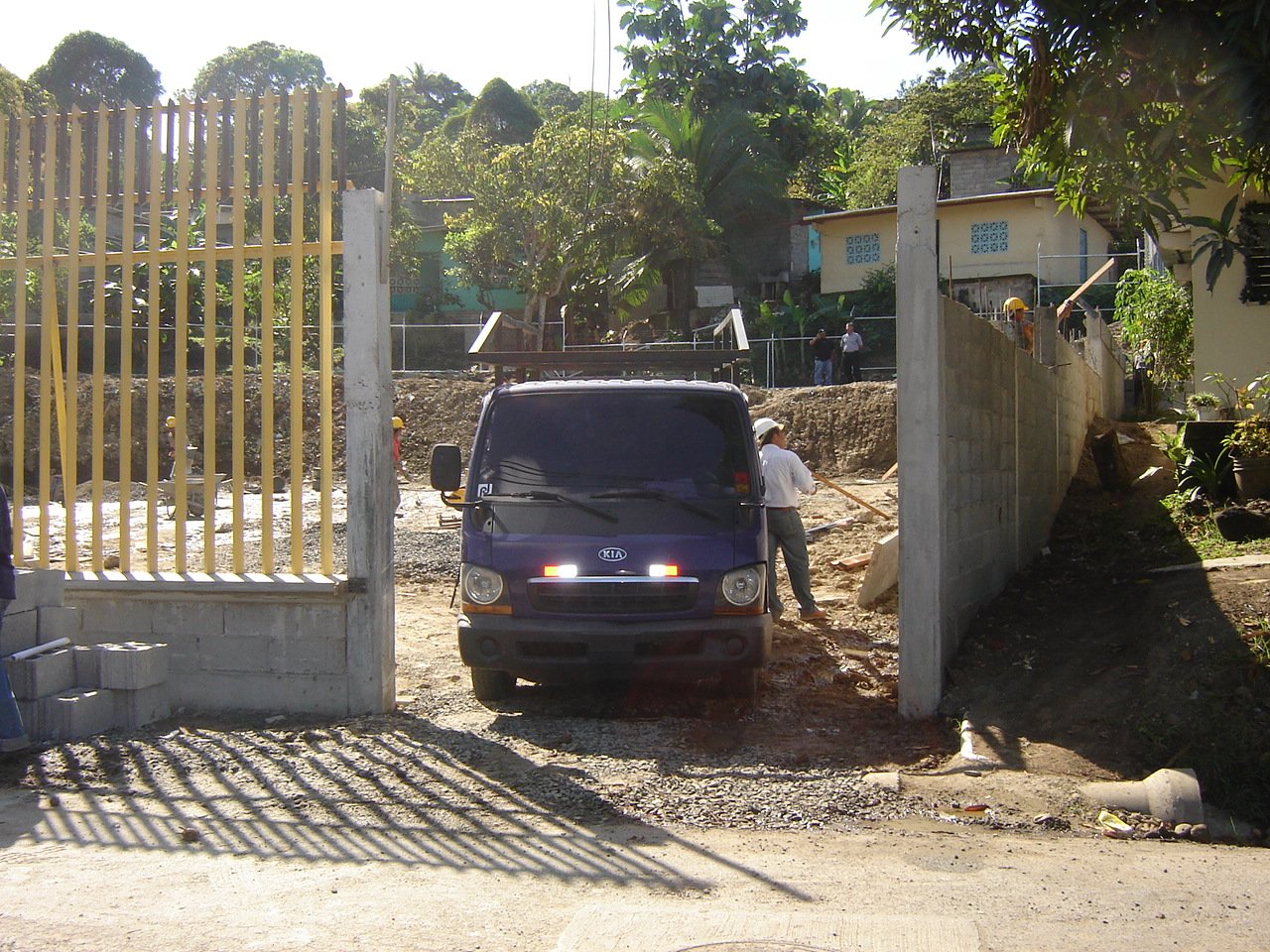 Para la ejecución material, fue necesaria la adquisición y demolición de cuatro residencias, seguida de trabajos intensivos de movimiento de tierra. La obra abarcó la instalación completa de sistemas pluviales y sanitarios, construcción de alcantarillado, cerramiento perimetral, portón de acceso y fachada principal.