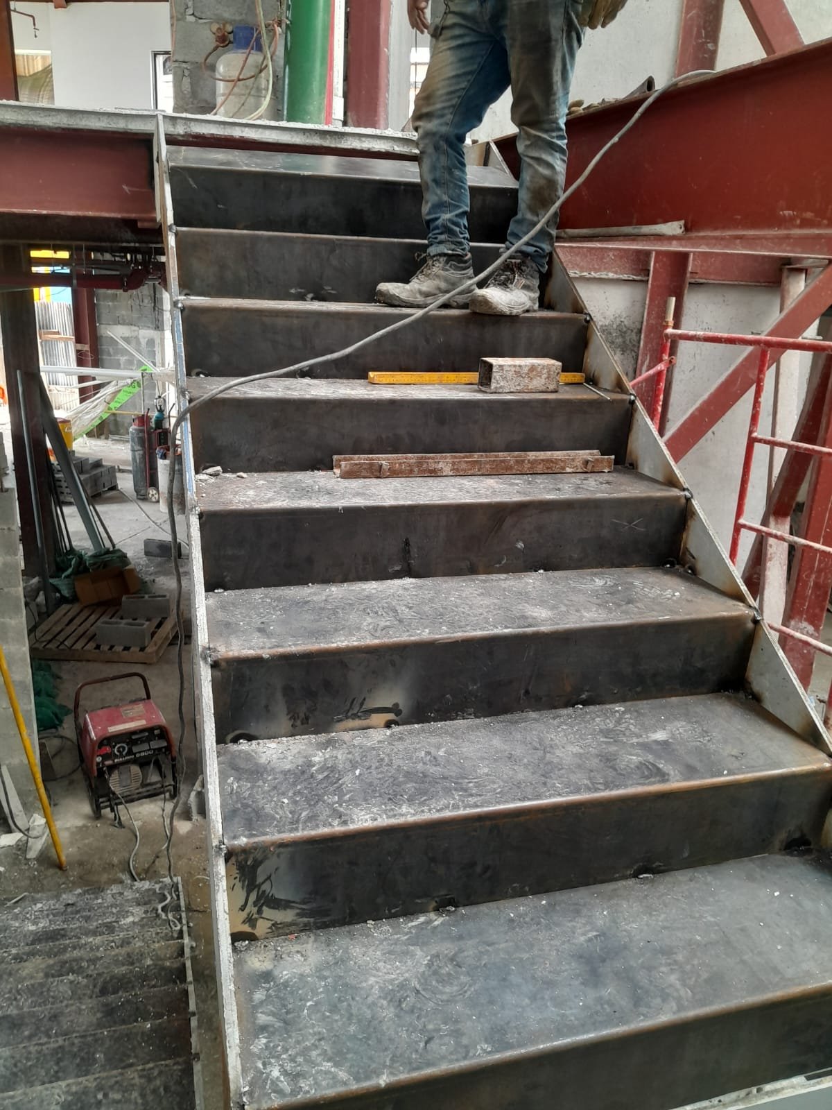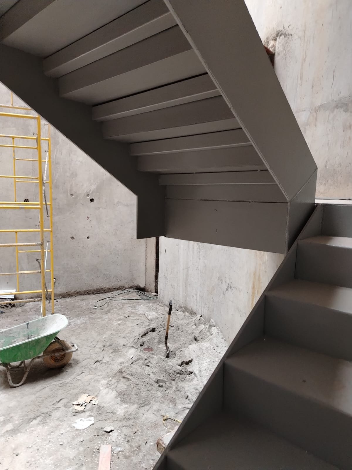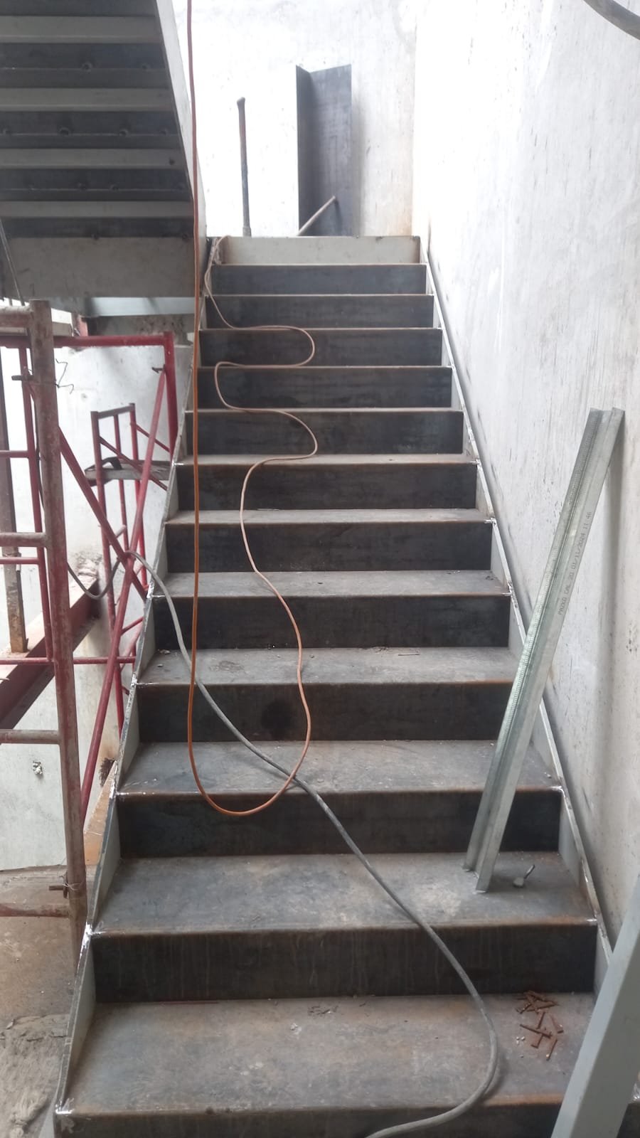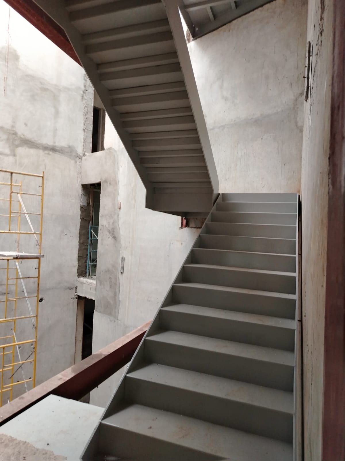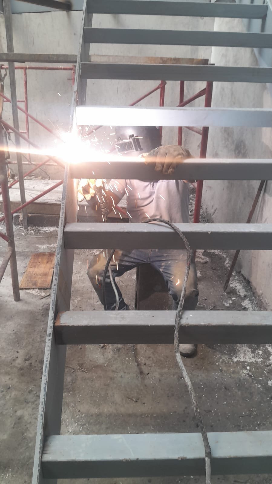 Escalera Metálica Principal: Consistió en la fabricación e instalación de una escalera metálica de tres niveles de altura. La estructura y los peldaños fueron construidos íntegramente en láminas de acero, siguiendo las especificaciones y planos suministrados por la firma de arquitectos MALLOL Arquitectos, S.A. Las piezas fueron prefabricadas en taller, garantizando la precisión dimensional, y posteriormente ensambladas en sitio, optimizando la Calidad de Montaje en un sitio de alta complejidad como Casco Viejo.